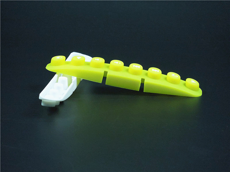 此款硅膠按鍵采用淡黃色色母調制,黃色色母加上半透明的硅膠原料配合硫化劑的添加是通過在里面加入對應顏色比例的顏色色膏混煉,得到相應需要的顏色,可自定義顏色定制加工生產,原材料采用食品級環(huán)保硅膠、質地柔軟,可塑性強。低碳環(huán)保,無毒無味,柔軟、防滑、防震、防滲水、隔熱、不易老化、不褪色、易清洗。